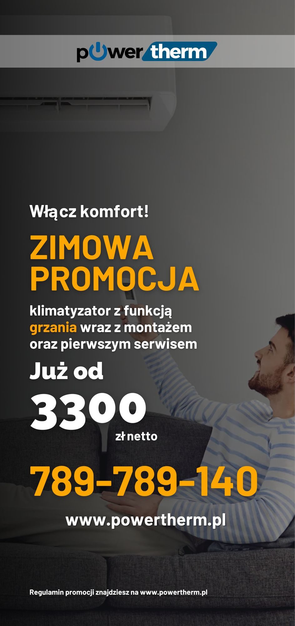 2. Promocja obowiązuje wyłącznie w przypadku podpisania umowy na dostarczenie urządzenia wraz z montażem z firmą PowerTherm sp. z o.o. – na terenie Polski-woj. Śląskiego